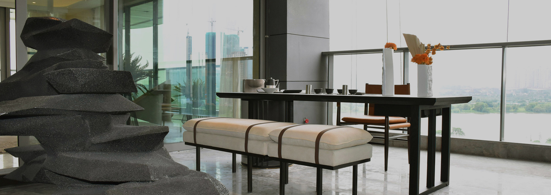 H?ng m?c c?ng trình hoàn thi?n phòng b?ng m?u và tòa nhà bán hàng c?a D? án Rong Mansion- Sunac Nghi X??ng